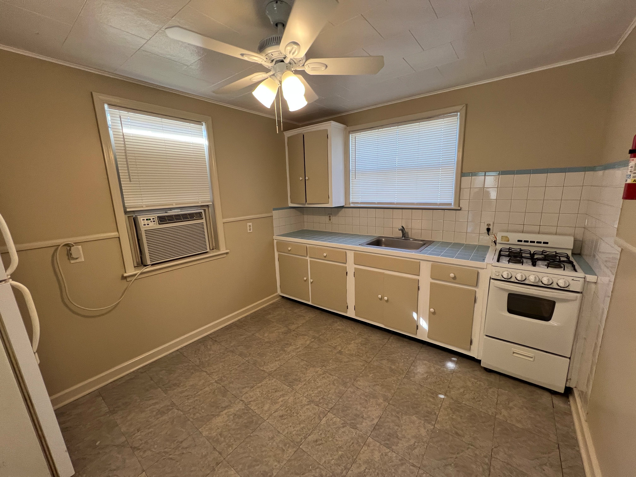 MOVE-IN READY 1 BEDROOM DOWNSTAIRS APARTMENT FOR LEASE! Discover this clean and cozy one-bedroom, one-bathroom apartment unit located in a quiet fourplex. This unit offers a practical living space with a living room and kitchen/dining area, featuring durable flooring throughout with no carpet, making maintenance a breeze. Enjoy the convenience of having water, gas, and lawn care all included in your monthly rent. The kitchen comes equipped with both a refrigerator and a stove for your use. One assigned parking spot is also provided. Please note the following: window units are provided for A/C and heat (no central system), there are no washer/dryer hookups available, and absolutely no pets are allowed. To qualify, applicants must have a verifiable income of at least $2475.00 per month.